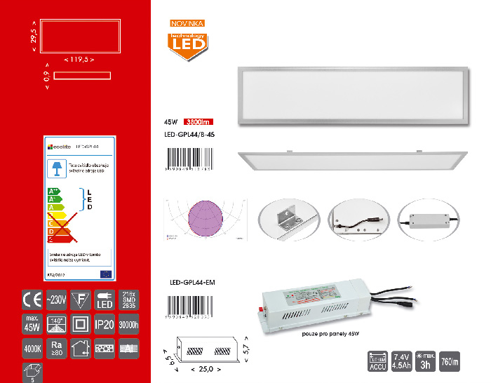ZEUS je moderne koncipovaný a vysoko úsporný LED panel s hliníkovým rámom, ktorý sa vďaka minimalistickému dizajnu hodí do komerčných priestorov, ale aj do vašej domácnosti. Varianty LED-GPL44-24, LED-GPL44-75 a LED-GPL44 / B-45 majú obdĺžnikový tvar a sú určené na inštaláciu do rastrového podhľadu. Výrobok využíva účinnú technológiu SMD LED s čipovým typom 2835. Driver je súčasťou balenia.