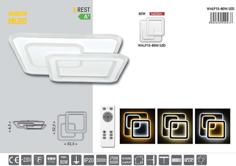 Súčasťou balenia je diaľkové ovládanie pre pohodlné nastavenie farby a intenzity svetla. Farbu svetla možno nastaviť aj pomocou obyčajného nástenného vypínača.