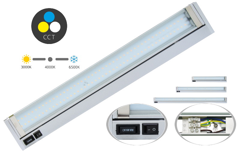 Praktické naklápacie podlinkové LED svietidlo s voliteľnou farbou svetla (3000K - 4000K - 6500K). Dostupné v troch výkonových variantoch (5.5, 10 a 15W)