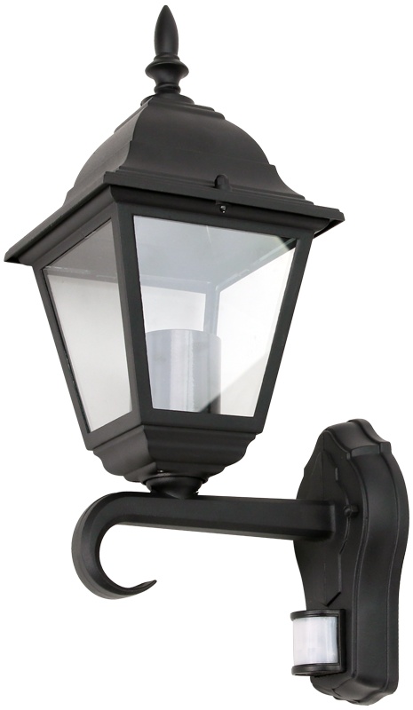 Exterierové senzorové nástenné svietidlo, so stojacim ramenom