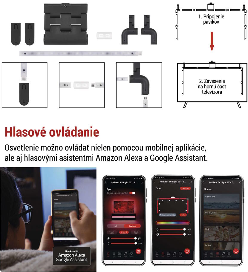 - kompatibilný s hlasovými asistentmi Amazon Alexa a Google Assistant