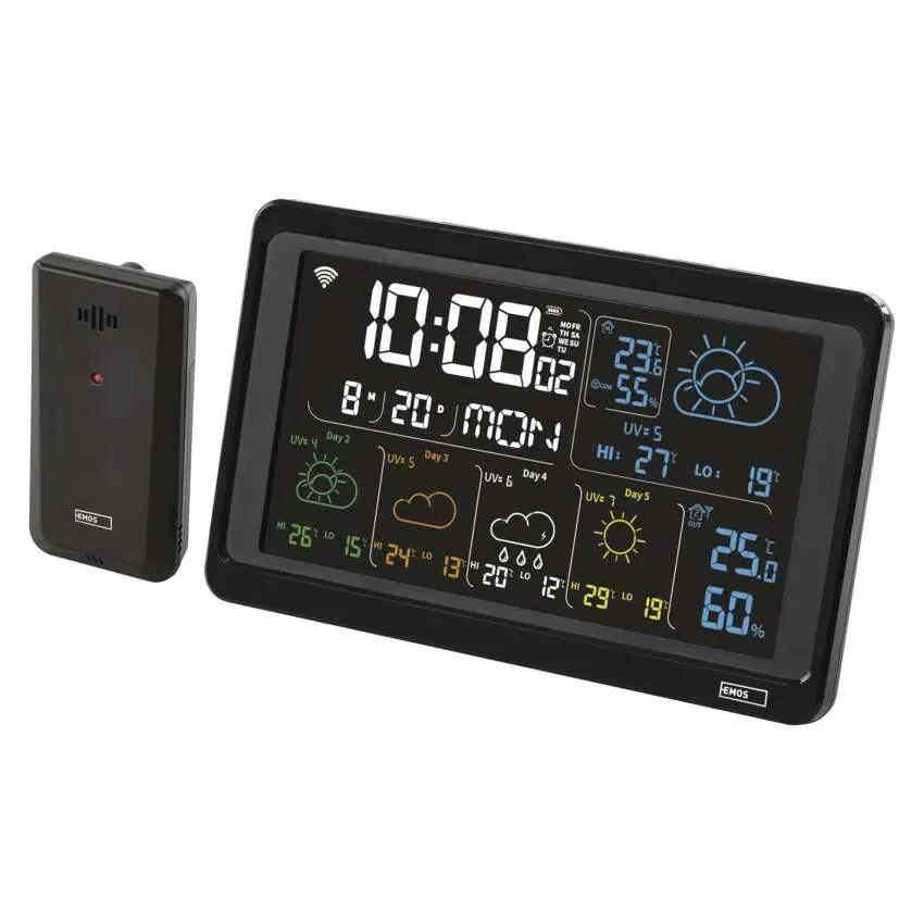 S bezdrôtovou meteostanicou EMOS E8610 GoSmart máte prehľad o počasí a teplote, či už ste doma alebo na cestách. Vďaka pripojeniu k Wi-Fi a podpore mobilnej aplikácie TUYA získate prístup k 5-dňovej predpovedi a aktuálnym hodnotám z vášho smartfónu. Tento prístroj vám pomôže sa rozhodnúť, ako sa pripraviť na každý deň.