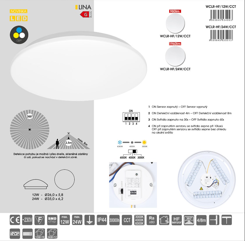 LED stropné svietidlo LINA (WCLR‑HF) – inteligentné osvetlenie s HF senzorom