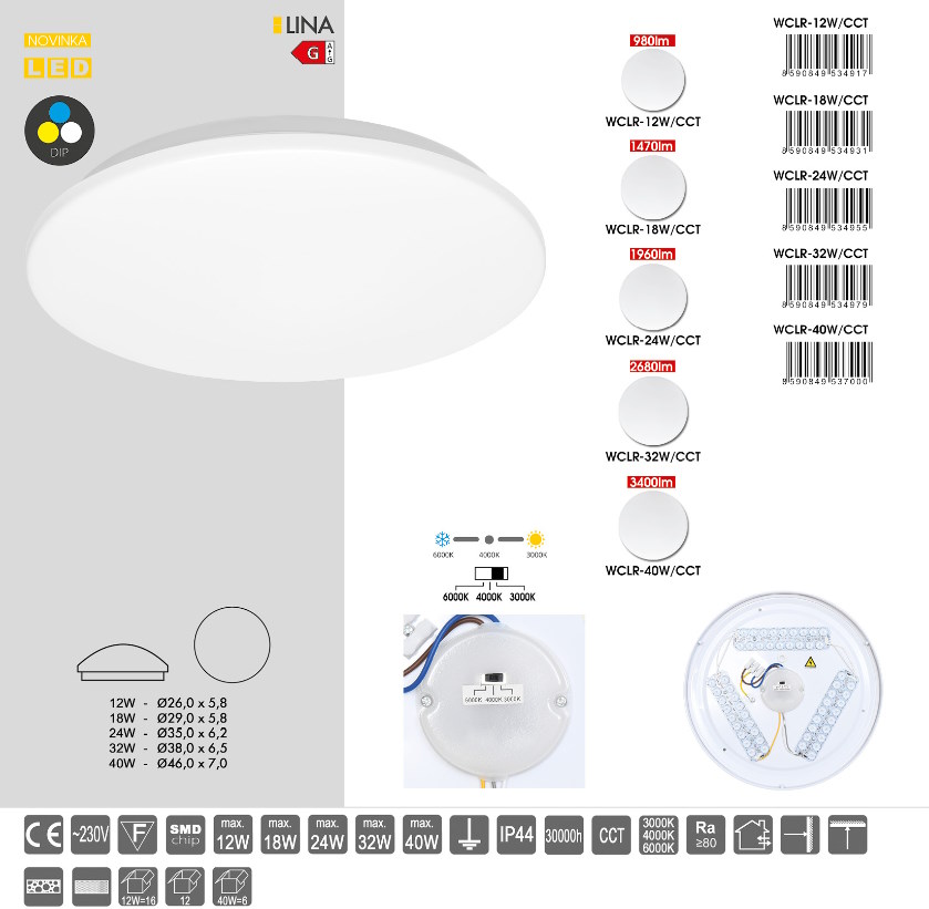 💡 Svietidlo LINA (WCLR) je univerzálne riešenie pre moderné osvetlenie interiérov. Vďaka úspornej LED SMD technológii a variabilnému nastaveniu farby svetla (CCT) si ľahko prispôsobíte osvetlenie konkrétnemu priestoru a účelu. Svietidlo je navrhnuté ako kruhové, priamomontážne LED riešenie s krytím IP44, takže je vhodné nielen do suchých miestností, ale aj do priestorov s vyššou vlhkosťou, ako sú chodby, kúpeľne či vstupy.