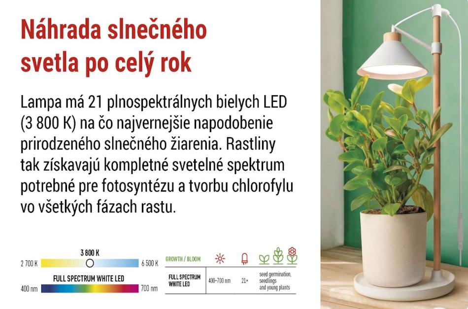 LED SVETLO S PLNÝM SPEKTROM - Napodobňuje prirodzené slnečné spektrum.