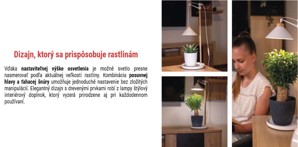 Tento model je určený pre doplnkové osvetlenie izbových rastlín, byliniek, sukulentov či kvetov v priestoroch s nedostatkom prirodzeného svetla (napr. v zimnom období či v tmavších miestnostiach). Hodí sa do obývačiek, kancelárií alebo kuchýň, kde podporuje fotosyntézu a zlepšuje vitalitu rastlín.