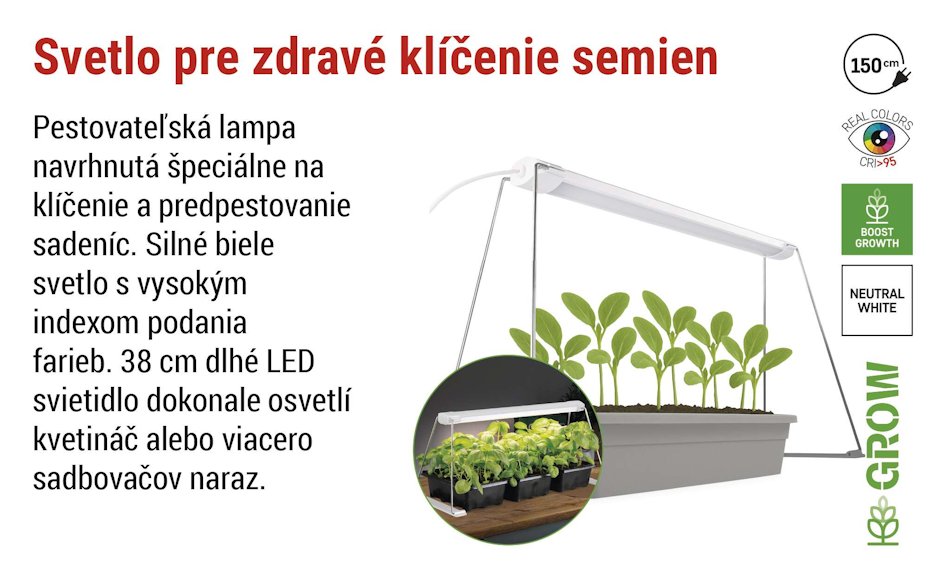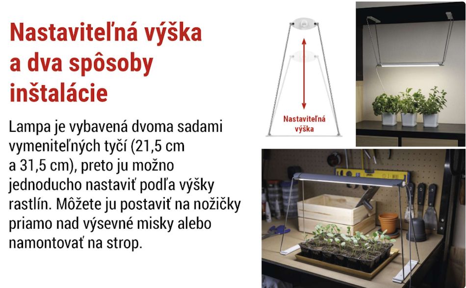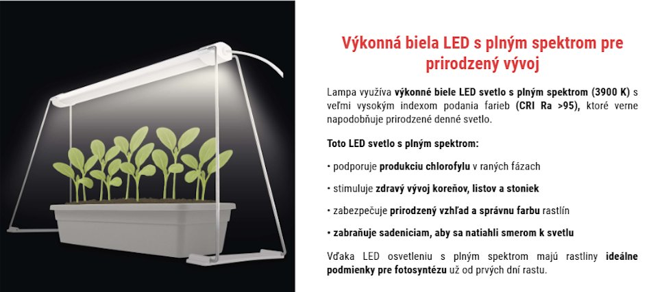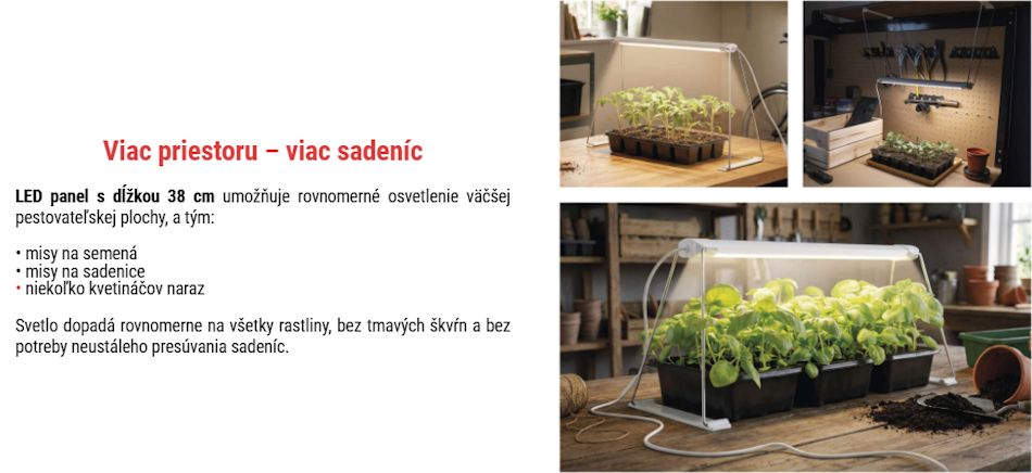 Optimalizované pre sadenice a mladé rastliny – svetelný panel pomáha predchádzať neželanému natiahnutiu rastlín smerom ku svetlu.