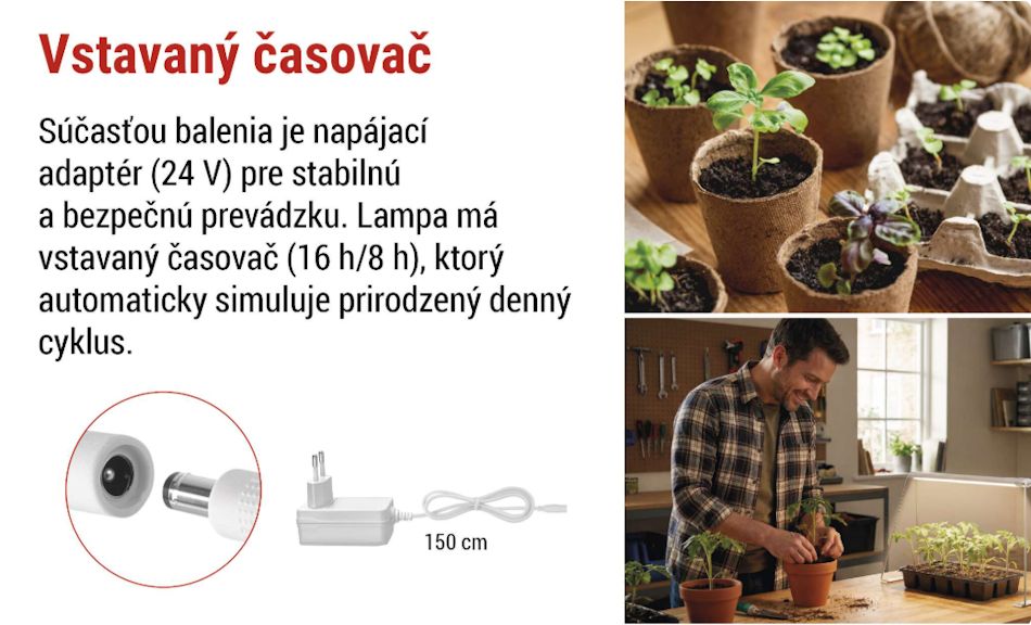- LED GROW pestovateľská lampa na sadenice 15 W, časovač, biela
