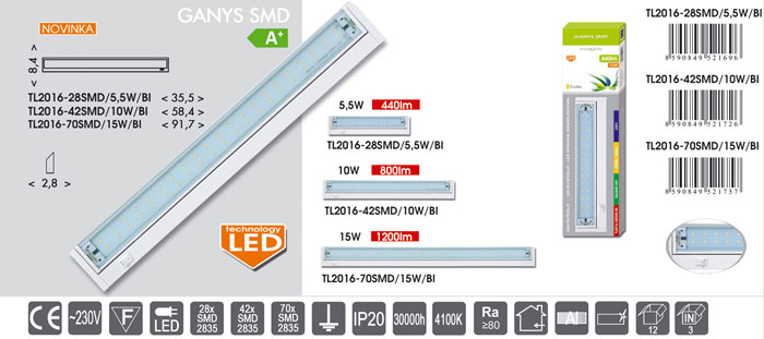 LED úsporné kuchynské výklopné podlinkové svietidlo GANYS 28SMD/5,5W/bieledo 7 pracovných dní19,50 €/ ks15,85 € bez DPH