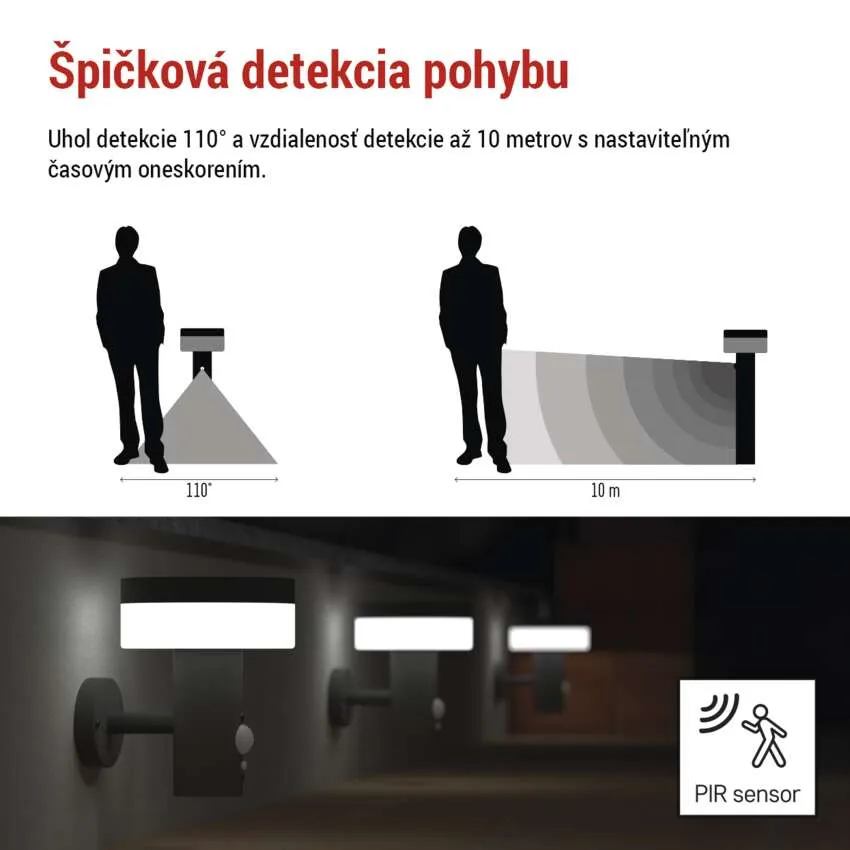 Svietidlo má výkon 2 W, teplú bielu farbu svetla (~3000 K) a krytie IP44, takže zvládne vonkajšie podmienky. S rozmermi 147 × 125 × 146 mm a moderným antracitovým prevedením sa hodí k chodníkom, terasám či vstupom. Vstavaný PIR senzor na detekciu pohybu až do 10 m navyše zvyšuje bezpečnosť a komfort.