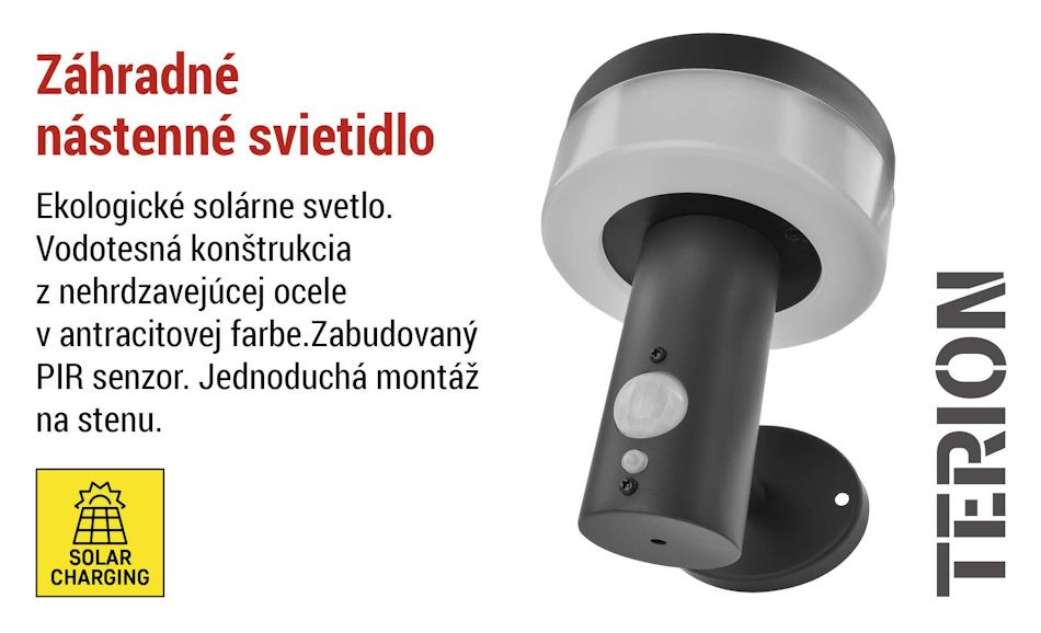 - LED nástenné solárne svietidlo so senzorom pohybu TERION