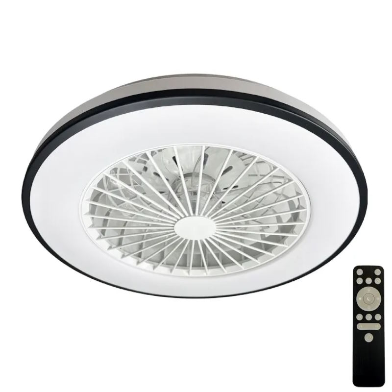 Nové moderné stropné svietidlo s výkonným vstavaným ventilátorom s funkciou reverzného chodu.