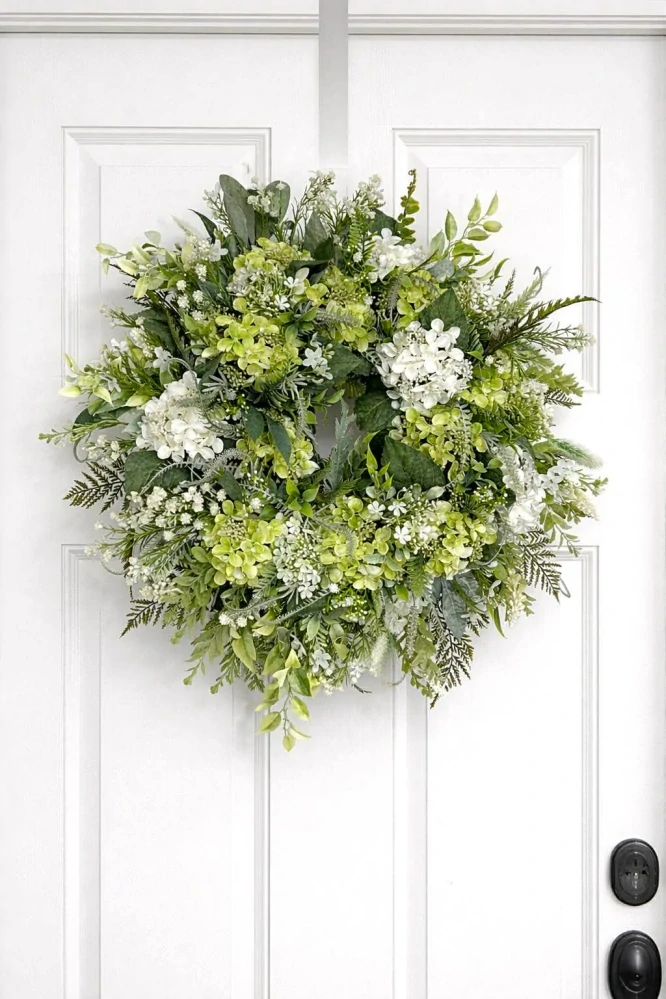 Maxi vintage veniec na dvere s hortenziami, zelený