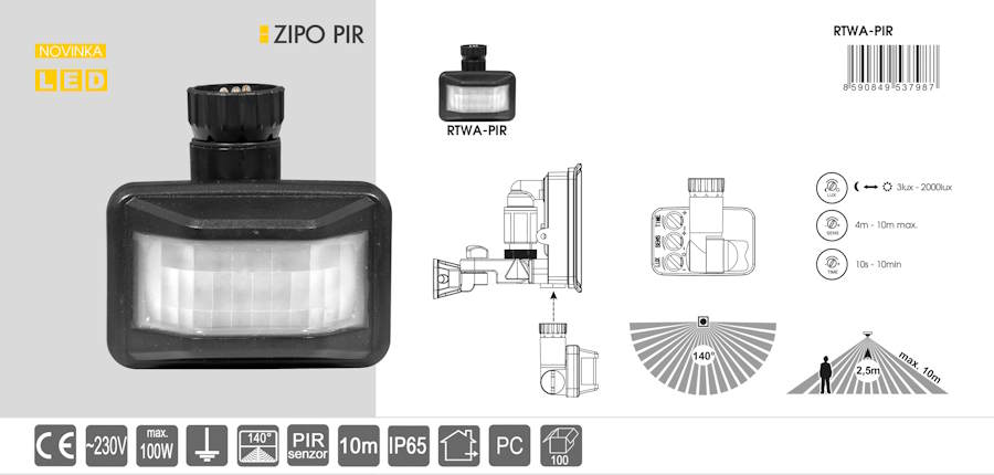 - PIR senzor k reflektorom ZIPO