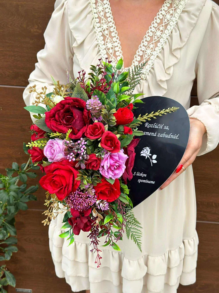 - Spomienkové srdce na hrob s gravírovaným textom, červené