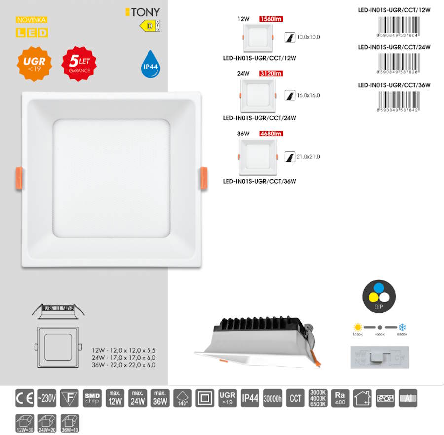 Vstavané LED svietidlo TONY je hranatý variant prémiového radu svietidiel s vysokou kvalitou spracovania a modernými technológiami. Hliníkové telo a kvalitný predradník zaručujú dlhodobú spoľahlivosť a životnosť.